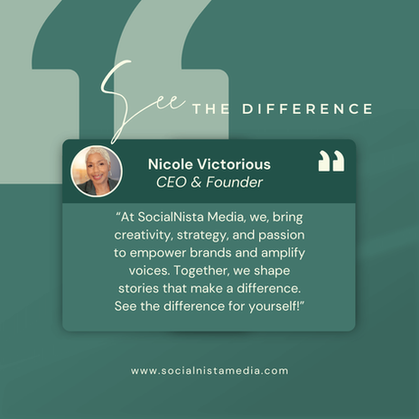 Nicole Victorious is a creative architect and the visionary founder of SocialNista Media, a boutique agency dedicated to empowering brands and amplifying voices. With over 8 years of experience as a social media manager and brand strategist, Nicole blends her passion for storytelling with a dynamic approach to digital marketing, helping businesses craft impactful and authentic narratives.